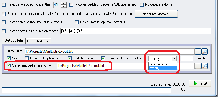 [+] Added option to remove domains that have number of emails equal or less than specified value, or to remove domains having exactly the same number of emails as the entered value.