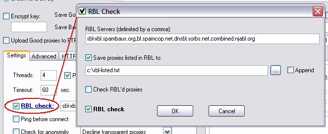 1. "Save proxies listed in RBL" allows to save blacklisted proxies to the file.