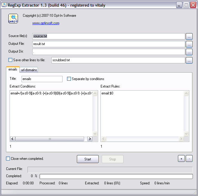 RegExp Extractor is an utility designed to extract various data from text files and logs using conditions and rules written using regular expressions.