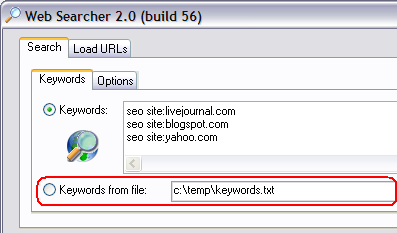 Extracting urls from web pages is a new feature in Web Searcher 2.0, that was not implemented in old version.