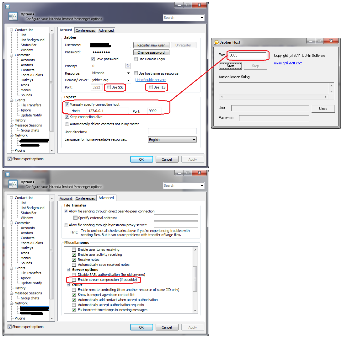 On the picture below I have shown the necessary settings in Miranda IM.
